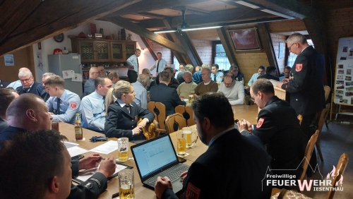 Nach der Eröffnung der Dienstversammlung durch 1. Bürgermeister Bernd Drummer berichtete Kommandant Florian Uttenreuther über das vergangene Jahr der aktiven Wehr. So wurde die Wehr zu 12 Einsätzen gerufen. Ab dem Frühling konnte der Übungsbetrieb wieder ohne größere Corona- Einschränkungen durchgeführt werden. Er berichtete weiter über den derzeit laufenden Grundlehrgang, der in diesem Jahr abgeschlossen werden würde. Des Weiteren verfügt die Wehr über 2 neue Atemschutzgeräteträger sowie einen weiteren „Leiter einer Feuerwehr“.